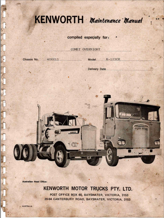 Kenworth Customised Maintenance Manual- K-125CR Chassis Number 400011 Comet Overnight