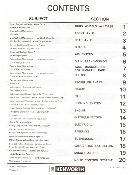 Kenworth Customised Maintenance Manual- W-925 (A Model)
